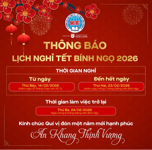 The University will resume normal operations on Tuesday, February 24, 2026 (the 8th day of the first lunar month, Year of Bính Ngọ).
